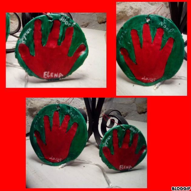 center;">J ai pris les empreintes de main dans de la pâte à sel d' Elena et Lorys puis je les aies peintes car ils étaient trop petits, souvenir de leur deuxieme noël