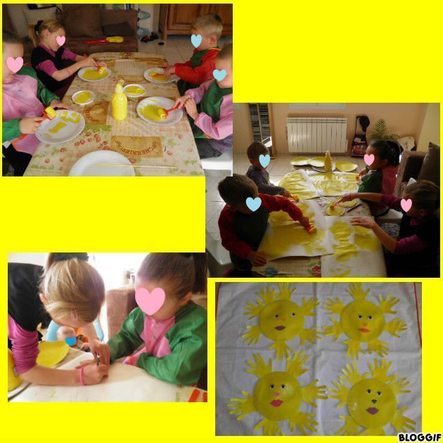 nounou à découpé toutes ces empreintes et collé tout autour de l'assiette