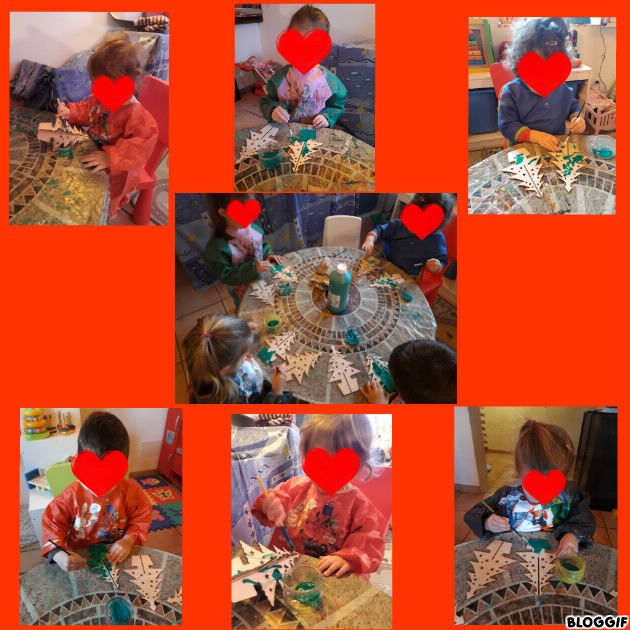 les enfants ont peint le sapin et mis des gommettes de noël.