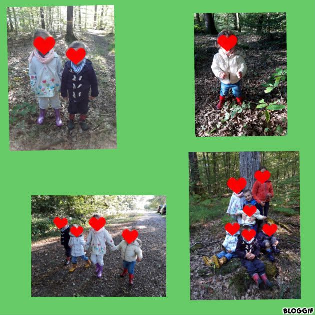 Promenade en forêt avec Tifenn, Nolan, Lola,Elena,Loïs .Ma copine Emilie nous a accompagné avec Lena et Meline pour trouver des glands pour future activité.