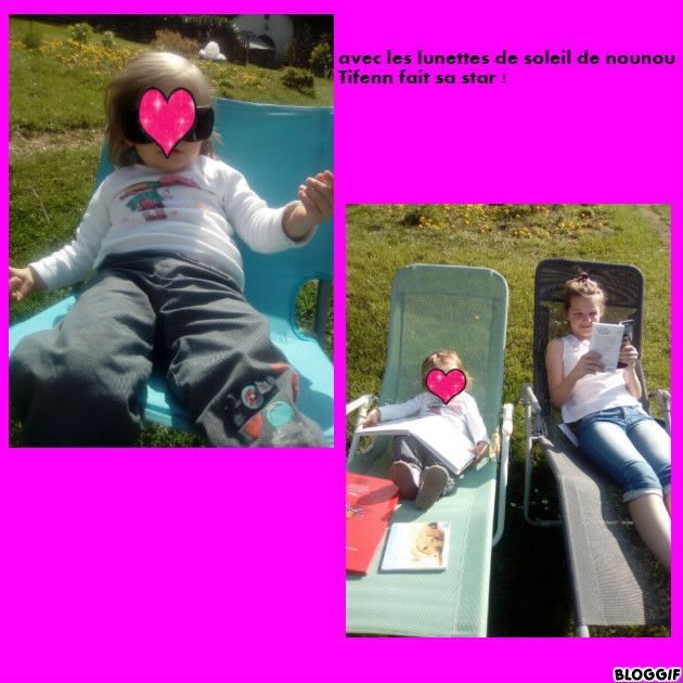 Il fait soleil alors on profite ! Tifenn 18 mois fait comme Mélissa , bronzette et lecture