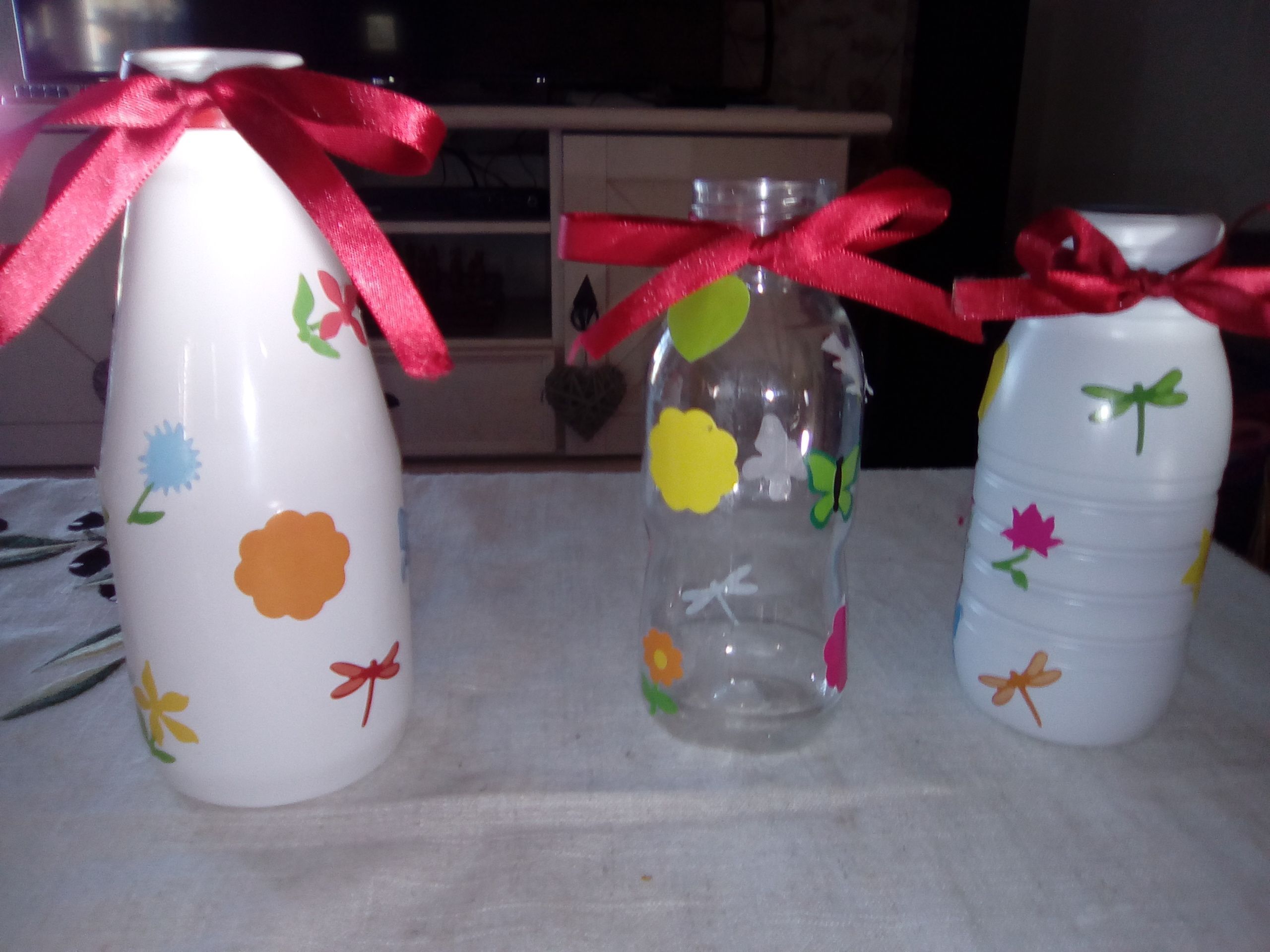 avec des bouteilles de crème vide, des gommettes et un petit ruban Nolan Tifenn et Solène ont fait un petit vase