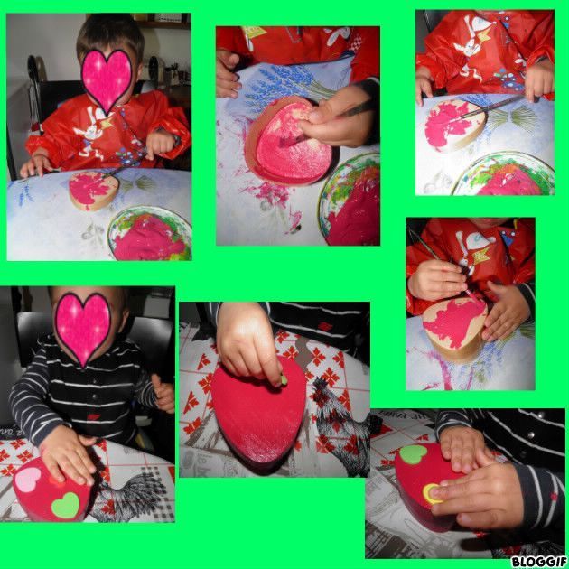 en premier il l'a peinte puis il à collé des gommettes en forme de coeur