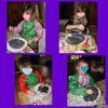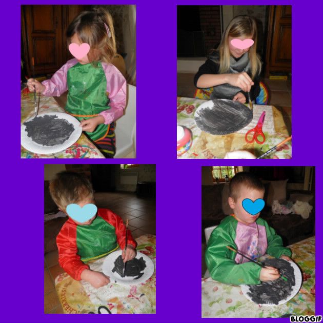 Maëlys et Lorenzo ont décoré une crèpe avec de la peinture aux doigts et peinture stylo pour petits