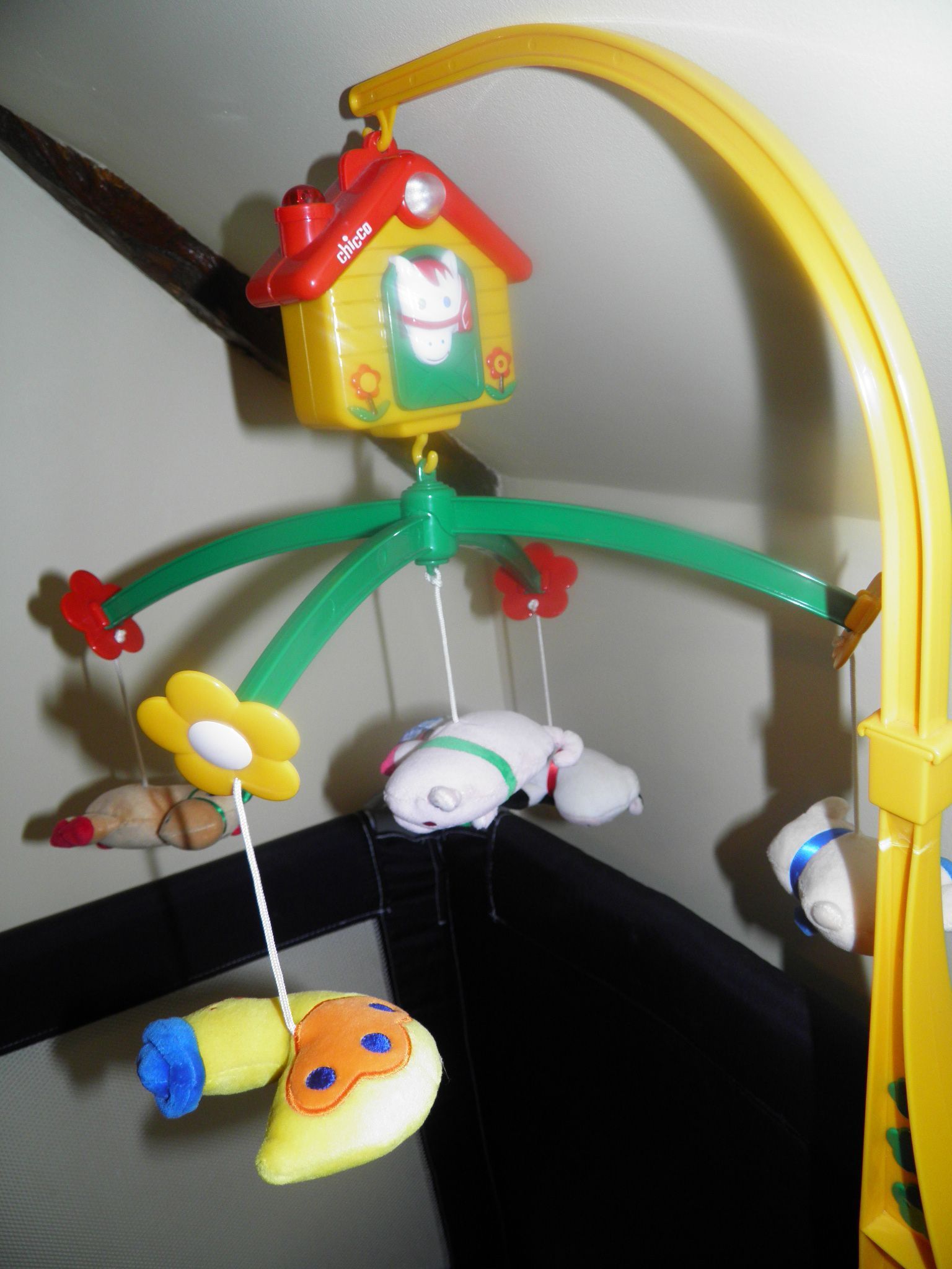 Mobile musicale avec annimaux en microfibre avec télécommande qui permet d'éteindre à distance sans s'approcher du lit