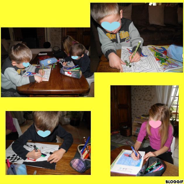 Lorenzo et Maëlys colorient d abord par terre chacun dans sa position préférée ...