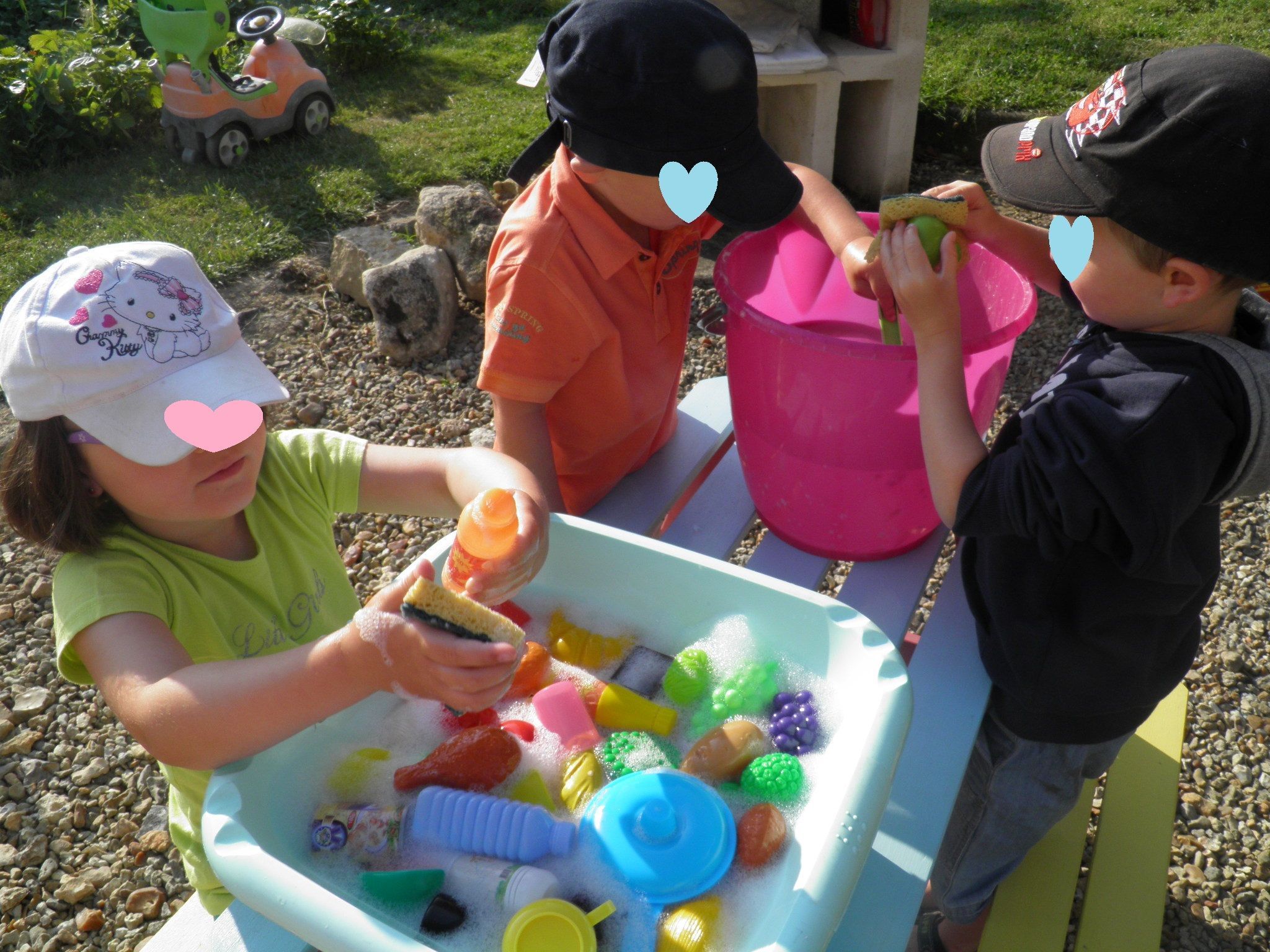 les enfants ont nettoyé toute la dinette et quelques jouets de dehors